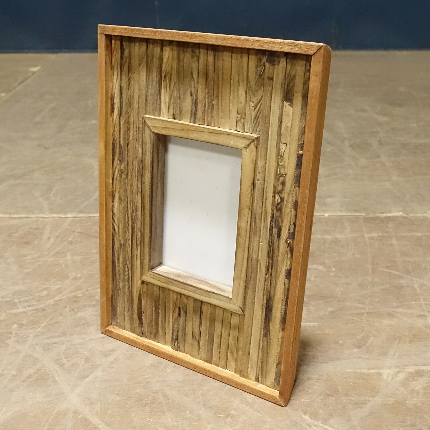 温もりある木の風合いが魅力の、モザイクチークのフォトフレームです。